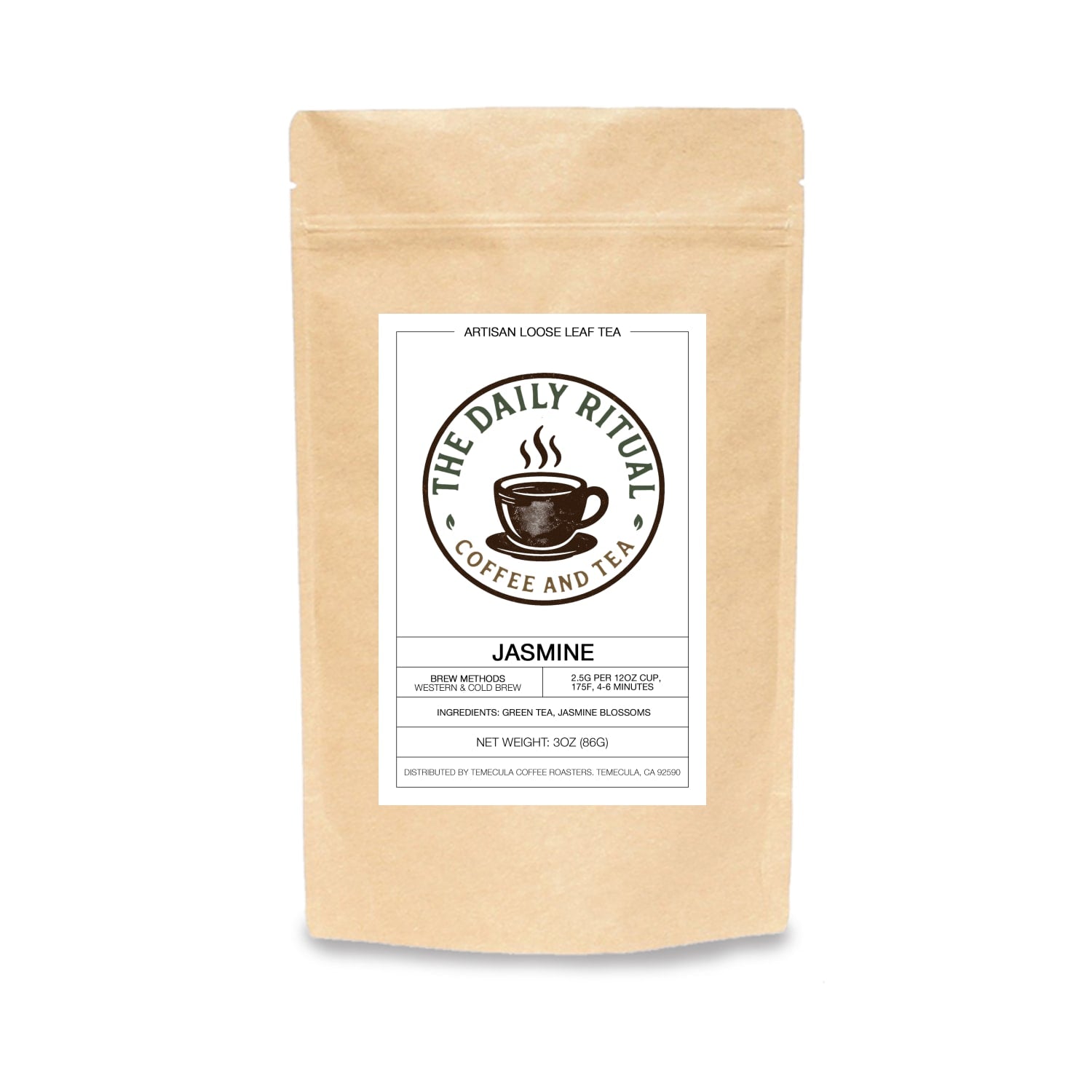 A fine blend of freshly plucked jasmine blossoms and green tea, this is medium-bodied, sweet, smooth, and silky. Good for multiple steepings. The green tea is picked by hand and prepared then set aside until the Jasmine blosoms are ready. The two are paired at just the right time to create this harmony of fruity flavors on a medium bodied green tea base.
